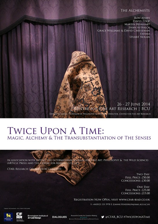 The Centre for Fine Art Research based at the School of Art, Birmingham Institute of Art and Design presents a conference like no other: Twice Upon a Time: Magic, Alchemy and the Transubstantiation of the Senses, 26-27 June 2014.