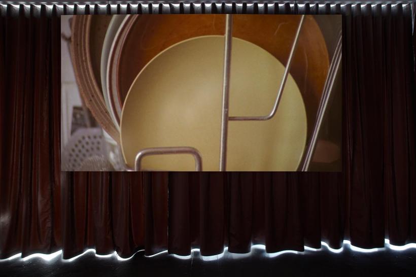 Holly Antrum started a conversation with 93-year-old artist Jennifer Pike. Her first solo exhibition ‘A Diffuse Citizen’ at Grand Union in Birmingham is a filmic realisation of this collaborative relationship called ‘Catalogue’ (2013). Filmed in Pike’s home and at Camden Arts Centre, it comprises a single large projection bound within the confines of an intimate curtained space.