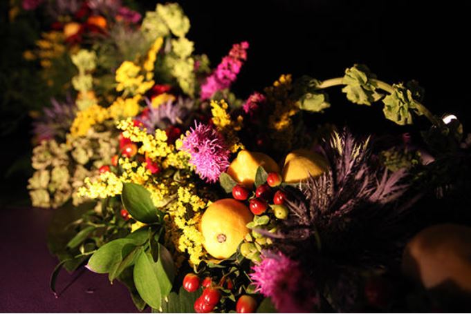 I visited Grace Williams’ exhibition on two occasions. On the first, my immediate response was to the almost overwhelming citrus smell emanating from the gallery. The scent was generated by an elaborate sculptural installation ‘Apport’ that incorporated fresh flowers, foliage, oranges and lemons with a synthetic citrus fragrance. The flowers and fruit were meticulously woven into a long arcing structure that emerged as a vibrant gush from beneath a white cotton petticoat suspended in mid-air. The petticoat operated as an echo or ghostly trace of a body, yet one made highly visceral and sensual by the lusciousness of the excreted natural forms. The work takes its point of departure from a historical report of a female medium called Anna Rothe who was searched by police in a séance on 1902. Rothe was found to have hidden one hundred and fifty seven flowers, oranges and lemons beneath her petticoat. The term ‘apport’ refers to the supernormal appearance of an object and research into bodily manifestations of ectoplasm informs this piece.