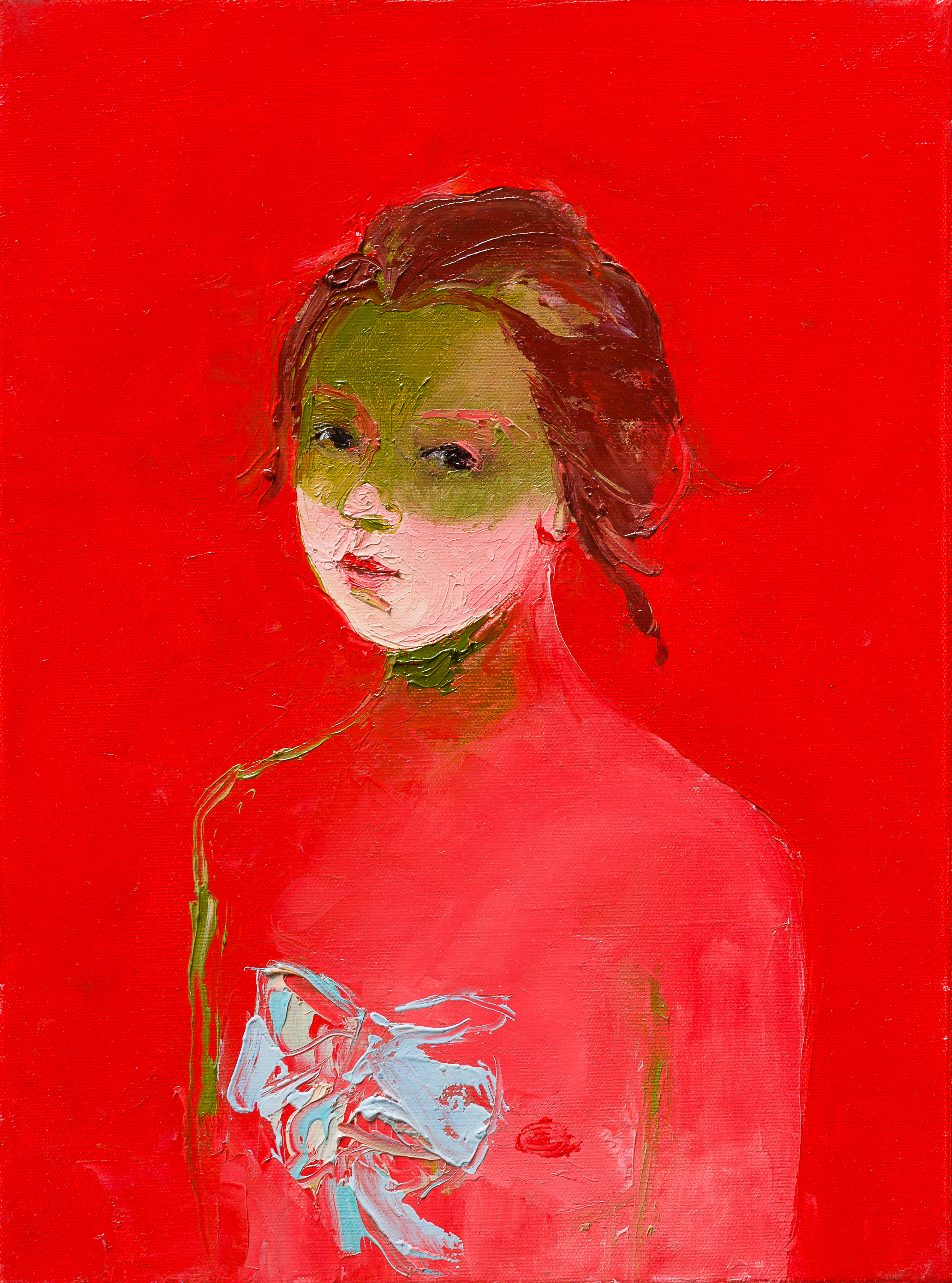Puberty heightens everything. Emotions are intensified, the insignificant is magnified and the importance of the presentation of the self, of body image, predominates. One can identify details within Wright’s paintings that are curiously heightened and often sensual: the bright red rim of an ear; a single translucent bow fixed to a naked chest; the uncomfortable shyness of the placing of a young girl’s clasped hands.