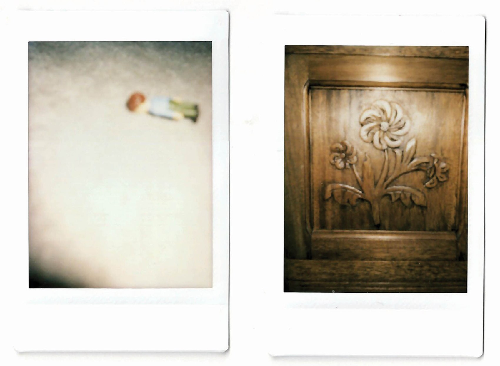 As well as the texts, the new Polaroid-type photographs I have made might also be described as vignettes. Their small scale references my family archival images and in content, they point towards some of the male members of my own family tree via significant objects including furniture, items of clothing, toys and the engraving plate used to produce Walter’s portrait for his sheet music ‘Carolina Duet’. Examination of the decorative vignettes used on this sheet music has additionally resulted in a new series of experimental line drawings.